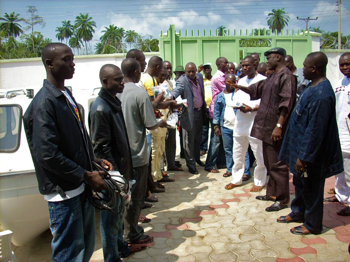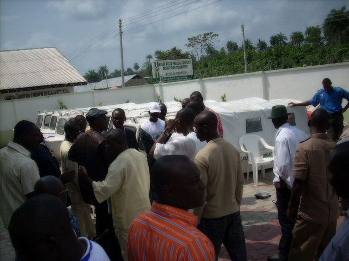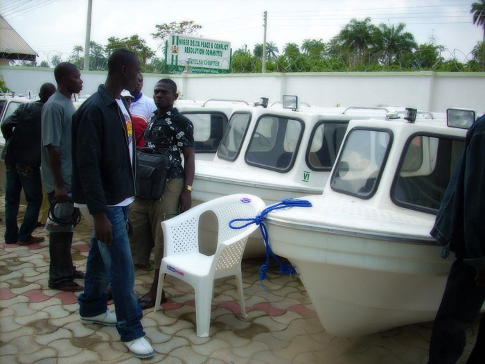 The Bayelsa State Chapter of the Niger Delta Peace and Conflict Resolution Committee Distributes Ten 75 horsepower Outboard engine boats to different militant camps existing in the state.