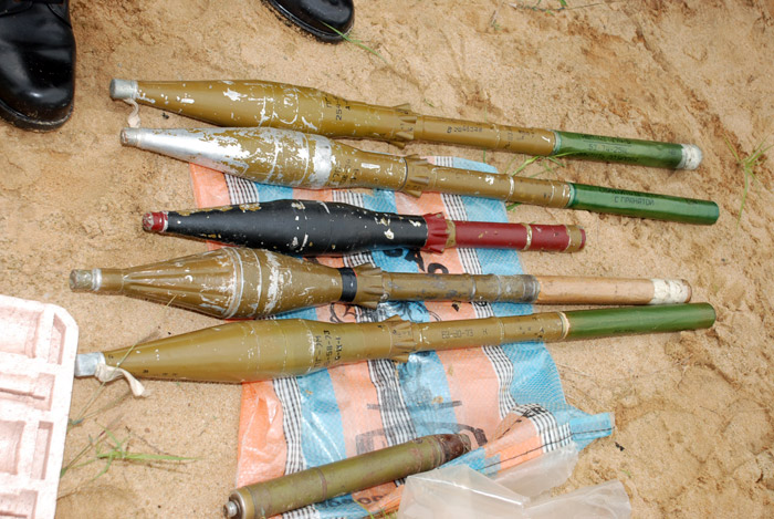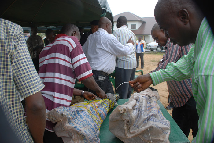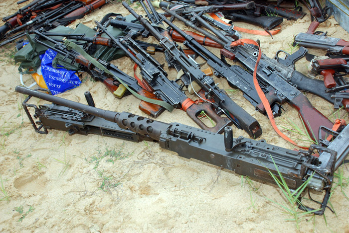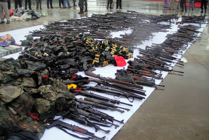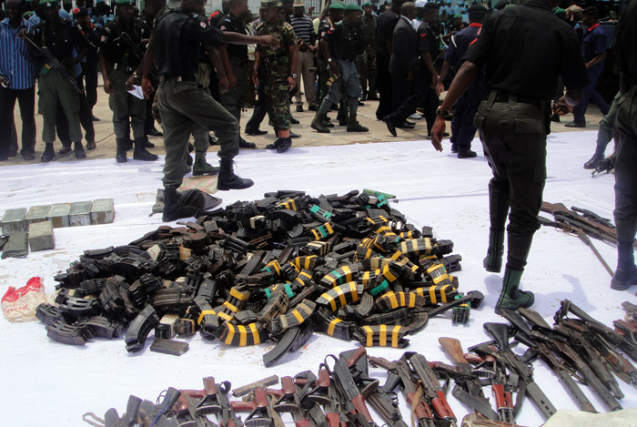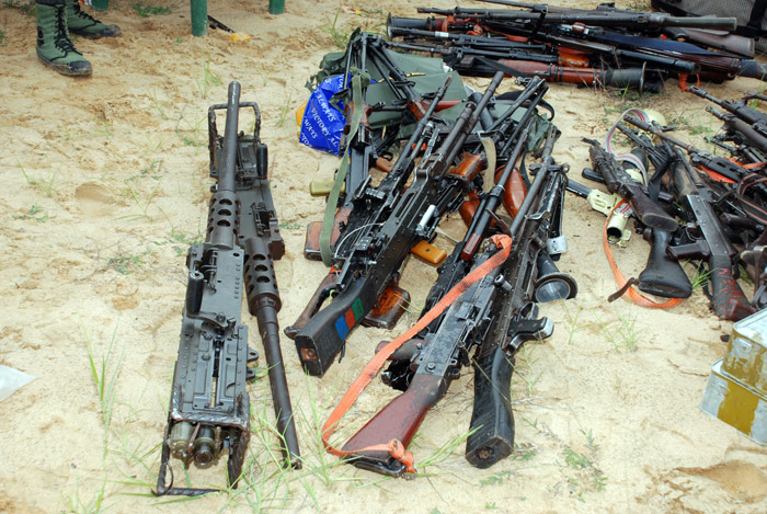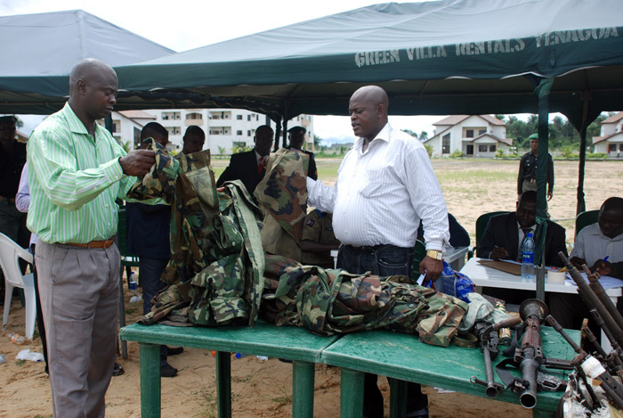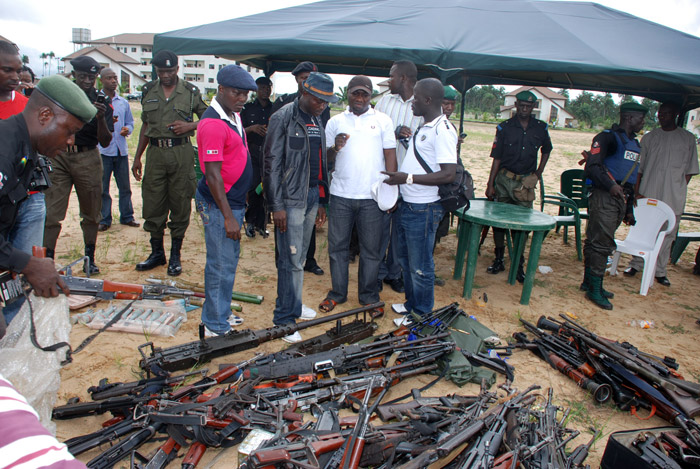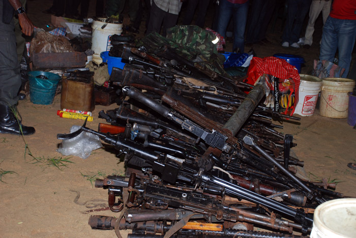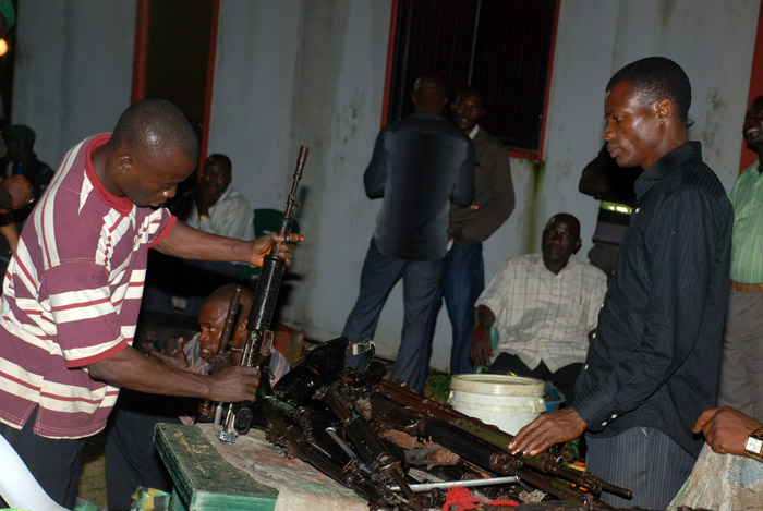 Chief James Jephthah supervises the disarmament of militants in Bayelsa State, Nigeria