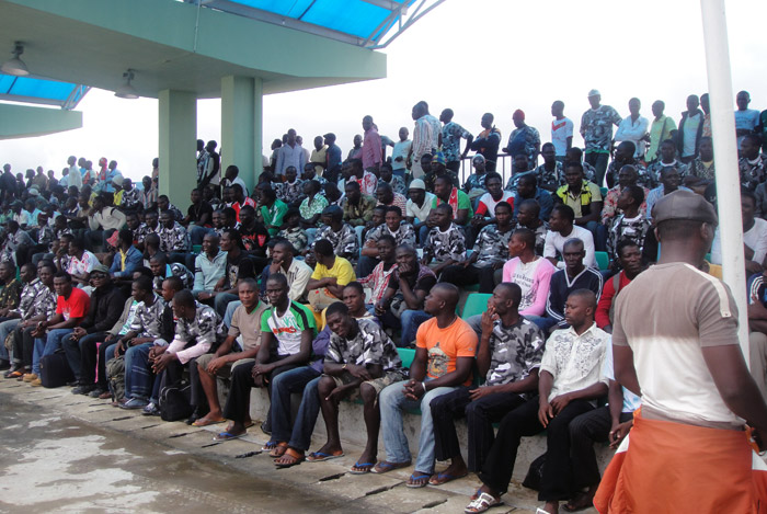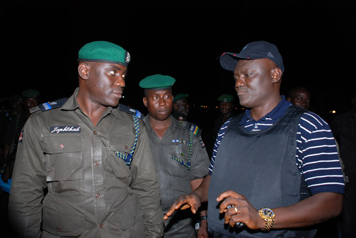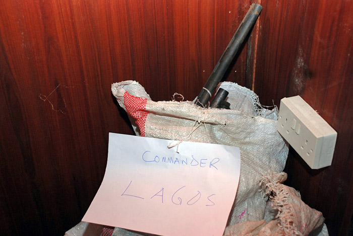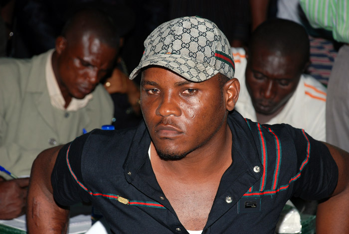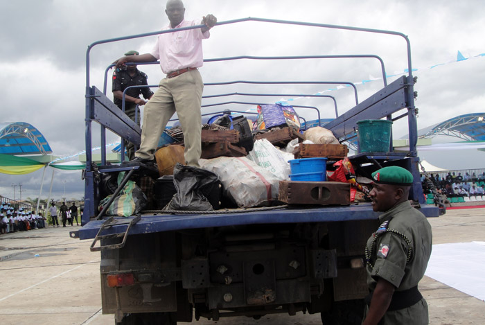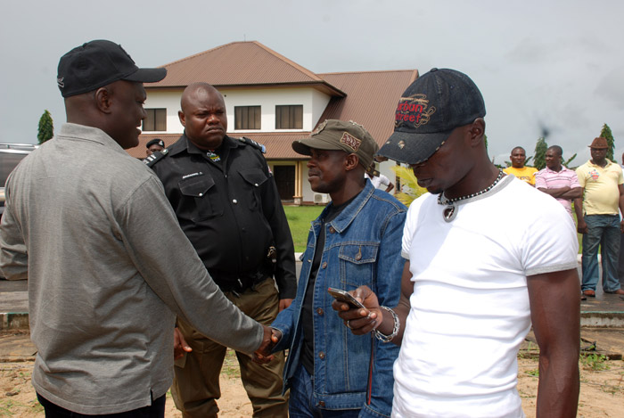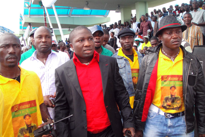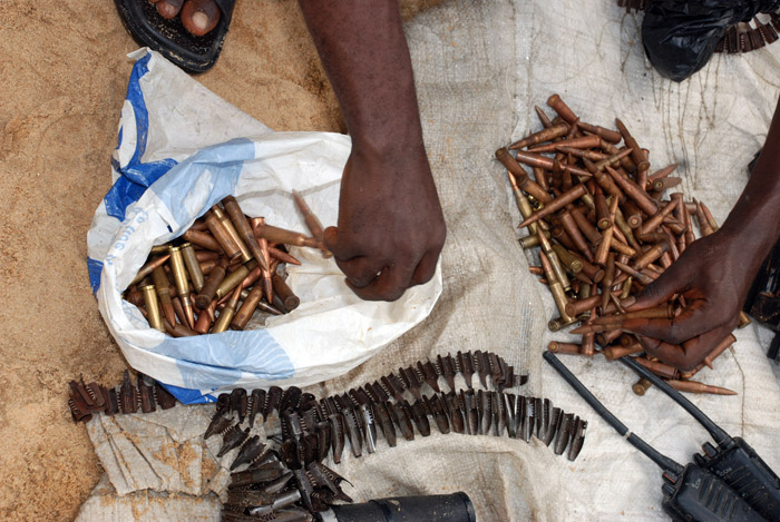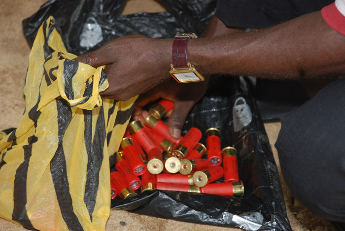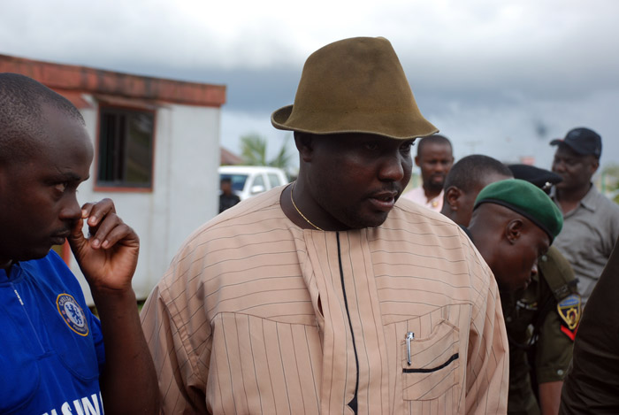 Chief James Jephthah supervises the disarmament of militants in Bayelsa State, Nigeria