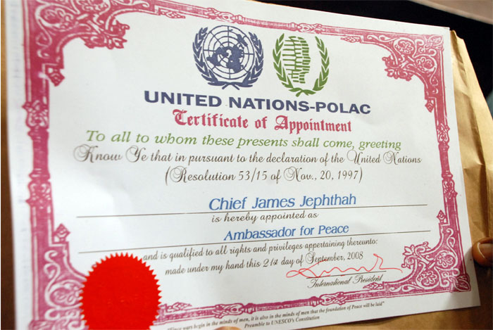 Chief James Jephthah receives the UN POLAC